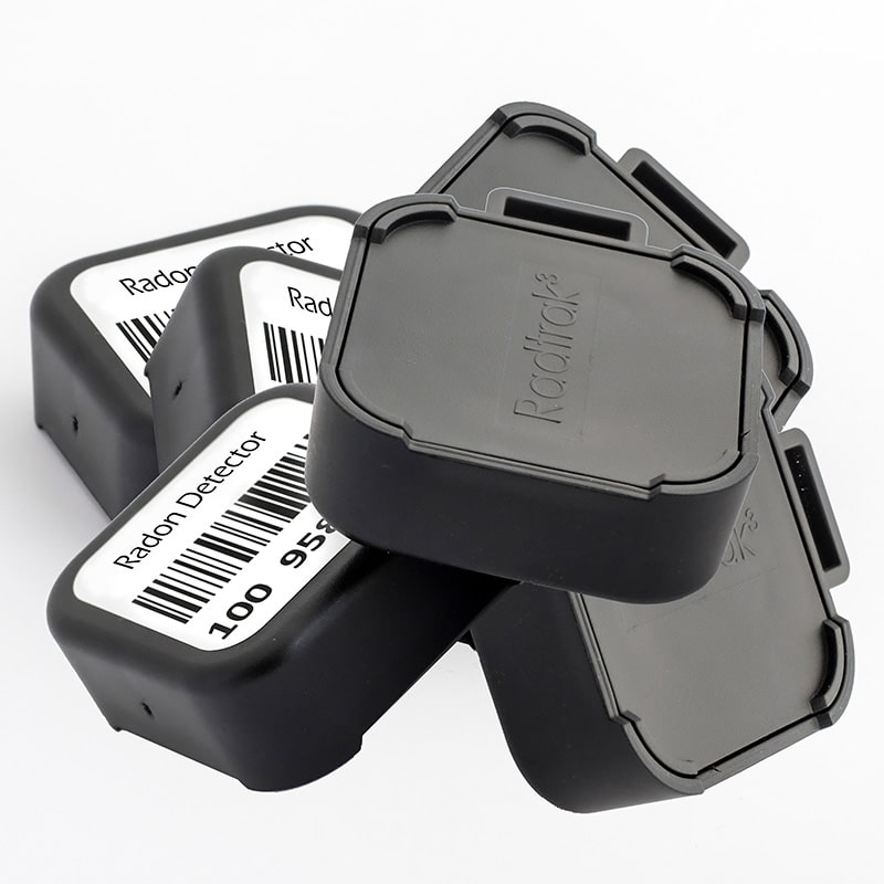 Radon-målebokse (dosimetre) til langtidsmåling, mindst to måneder, af radon. Den radonmåling Sundhedsstyrelsen anbefaler. Nemlig via et lille dosimeter med en særlig sporplast, du benytter til at måle med over en periode af mindst to måneder.