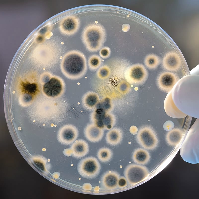 Det er let selv at tjekke indholdet af svampesporer i luften. Du skal bare lade den petriskål, du modtager med posten, stå fremme uden låg i en times tid. Sæt låget på igen og vent fire døgn. Herefter kan du selv tælle antallet af skimmelsvamp-kolonier.