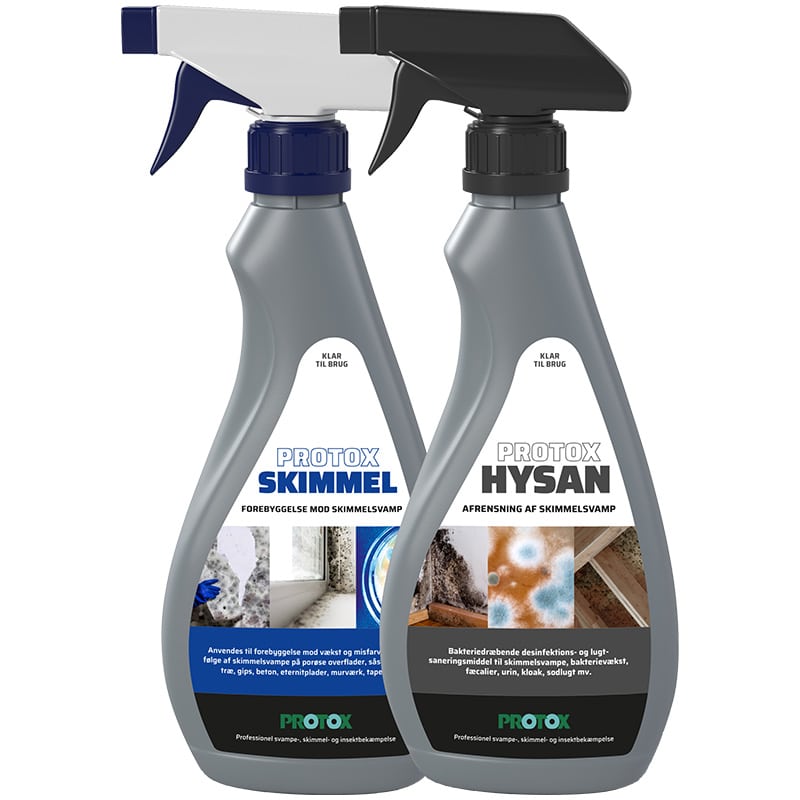Det er ikke blot vigtigt effektivt at få fjernet skimmelsvamp. Det er lige så vigtigt også at forebygge ny vækst af skimmelsvamp på det samme område. Med vores Protox rens-og-forebyg sæt kan du gøre begge dele.